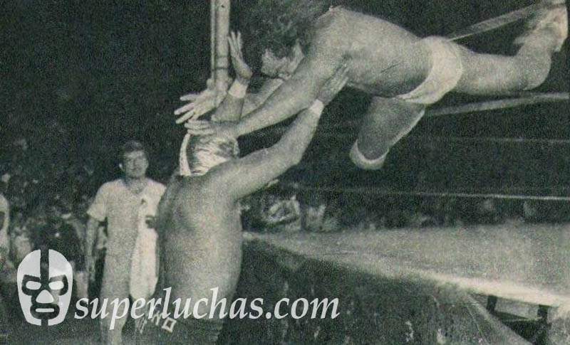 Tamba, Lobo Rubio y Luis Mariscal fueron descalificados en el evento especial en relevos australianos ante la vistosa tercia de enmascarados integrada por Huracán Ramírez, Mano Negra y Solar I.