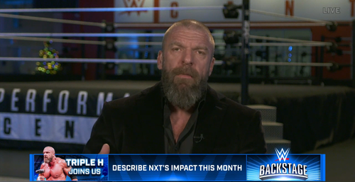 El panel del último programa de WWE Backstage contó con Booker T, Christian, Paige, Renee Young y Samoa Joe. Precisamente, los dos últimos fueron los encargados de entrevistar a Triple H.