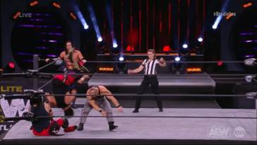 «Pero Santana lo sorprende con un Cutter, Reynolds entra al ring para ayudar a su amigo, pero recibe Spinebuster de Ortiz. MJF es pateado por Page, pero Page luego es tirado contra al esquinero. Silver logra un tremendo Decoder, estilo Huracarrana, aunque MJF cae mal… pero por fortuna no se rompió el cuello ni algo malo pasó.