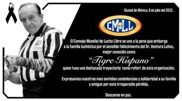 La lucha libre se viste de luto una vez más, pues este 8 de julio de anunció la muerte de Ventura Lahoz Martín, mejor conocido como el Tigre Hispano a la edad de 85 años.