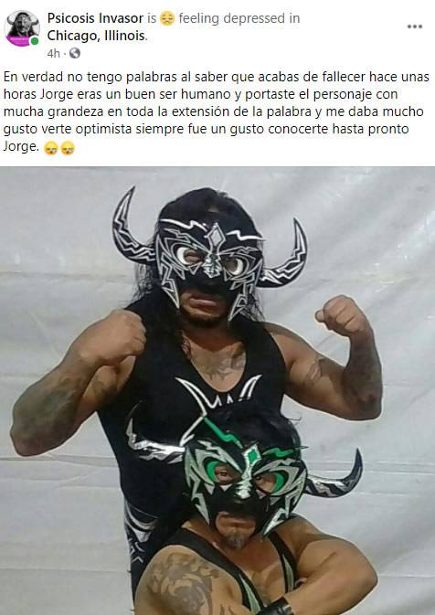 «En verdad no tengo palabras al saber que acabas de fallecer hace unas horas Jorge eras un buen ser humano y portaste el personaje con mucha grandeza en toda la extensión de la palabra y me daba mucho gusto verte optimista siempre fue un gusto conocerte hasta pronto Jorge», comentó Psicosis o también conocido como Ripper en el CMLL.