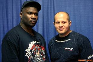 Cabe decir que el peso de Roger es igual al de Lesnar: 120 Kg, (15 kg más pesado que Fedor), notar la diferencia de alturas en la imagen.