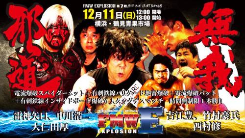 5. Double Main EVent II ~ Current Blast Spider Net + Barbed Wire Barricade Min Explosion + Current Blast Explosion Bat + Barbed Wire Inside Board Explosion Match:[/B] Atsushi Onita, Raijin Yaguchi y Koji Nakagawa vencieron a Osamu Nishimura, Yutaka Yoshie y Katsushi Takemura (16:44) cuando Onita colocó espaldas planas a Takemura tras un golpe con el Barbed Wire Blast Bat