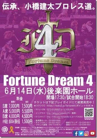 En conferencia de prensa, se dio a conocer el cartel completo para «Fortune Dream 4«, el evento altruista que produce la leyenda de la lucha libre japonesa, Kenta Kobashi y que se efectuará el 14 de junio venidero en el tradicional Korakuen Hall de la capital nipona.