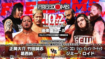 6. FREEDOMS vs. GCW ~ Last Harmagedon Fluorescent Lighttubes Death Match: Jun Kasai, Daisuke Masaoka y Masashi Takeda derrotaron a Alex Colon, John Wayne Murdoch y Jimmy Lloyd (14:01) con un Reverse U Crash de Takeda sobre Colon.