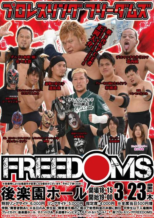 6. KING of FREEDOM WORLD CHAMPIONSHIP: Daisuke Masaoka (c) derrotó a Masashi Takeda (16:11) con la Rokura Kai defendiendo el título.