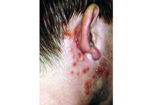 El virus del herpes simple (Herpes gladiatorum) puede transmitirse al ponerse en contacto con lesiones activas o con un excretor asintomático (Ejemplo: Costra). Pero es