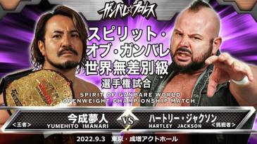 En contra de los planes que Yumehito Imanari tenía, cayó en el turno estelar ante Hartley Jackson y éste se apoderó del Campeonato Spirit of Ganbare. Fue a través de un Jumping Piledriver que el australiano dominó a Imanari para proclamarse como nuevo campeón.