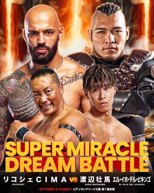 Uno de los combates será una lucha de parejas, donde la súper estrella de All Elite Wrestling, Ricochet, se aliará con CIMA para enfrentar al ex Megacampeón AAA, Hijo del Vikingo quien hará sociedad con Soma Watanabe.