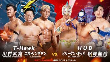 7. T-Hawk, El Lindaman y Takehiro Yamamura vencieron a HUB, Billy Ken Kid y Ryuya Matsufusa (15:39) con un Aspire de Yamamura sobre HUB
