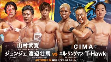 7. GLEAT YOUNG BLOOD vs. #STRONGHEARTS: T-Hawk, El Lindaman y CIMA vencieron a Takehiro Yamamura, Soma Watanabe y Junjie (16:52) con un Cobra Twist de T-Hawk sobre Yamamura.