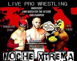 El luchador mexicano, Rey Fuego le envió un mensaje a los boricuas Bandolero y al actual campeón jr completo de WWC de Puerto Rico, Angel Cotto para este 25 de Mayo en el Berwyn Eagles Club, donde el ganador de este encuentro sera el primer campeón peso completo de la Global Wrestling Stars.