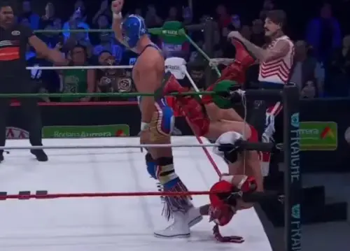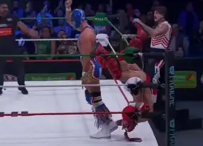 El caos aumentó cuando Dragón Lee logró reaccionar y buscó entregar el relevo, pero el Hijo del Vikingo retiró la mano y acto seguido lo atacó con una patada. Esta traición dejó a Lee indefenso, situación que Dominik aprovechó para conectar un 619. El Grande Americano cerró la secuencia con otro cabezazo potenciado, asegurando así la victoria para su equipo.