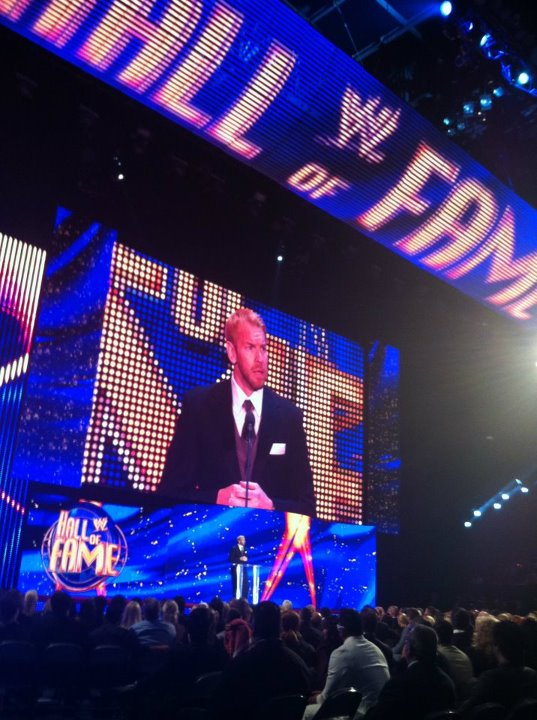 Imagen: Christian Alista a Edge al WWE Hall of Fame Class 2012