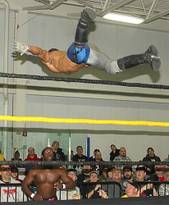 AR Fox vuela sobre Rich Swann en el Aniversario 14 de CZW / Photo by: Lyle Williams