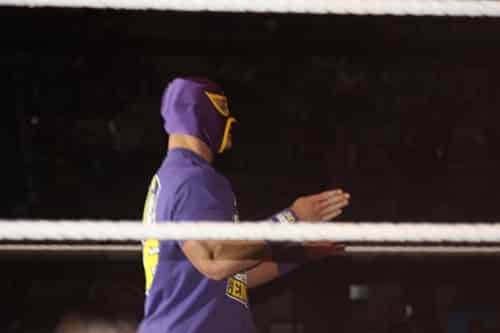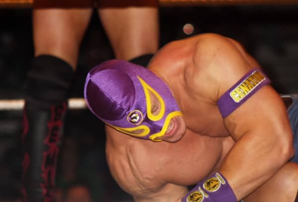 Estas son algunas de las imágenes en donde se puede observar con detenimiento la máscara del entretenedor Juan Cena, primo mexicano de John Cena.