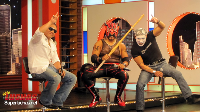 Estas son imágenes del X Team, formado por Juventud Guerrera, El Oriental y Charly Manson, quienes estuvieron como invitados al programa TV de Noche, revista noctura conducida por Jorge Muñíz, Raquel Bigorra y Andrea García. El show saldrá al aire el 14 de julio