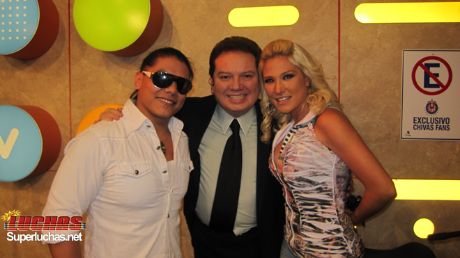 Estas son imágenes del X Team, formado por Juventud Guerrera, El Oriental y Charly Manson, quienes estuvieron como invitados al programa TV de Noche, revista noctura conducida por Jorge Muñíz, Raquel Bigorra y Andrea García. El show saldrá al aire el 14 de julio Los luchadores participaron en el juego beso o cachetada. Juvi también habló de