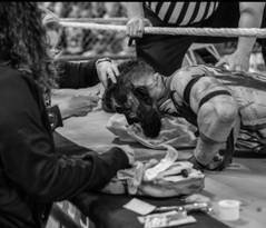 Bálor comenzó a sangrar y fue atendido por el cuerpo médico, quien