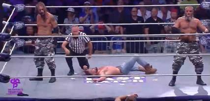 Luego, Mark entró al ring y se encargó de ambos Von Eric hasta que ya no le dio más y fue dominado por algunos segundos, pero con una patada voladora sorpresiva, tiró a Ross contra la esquina inferior.