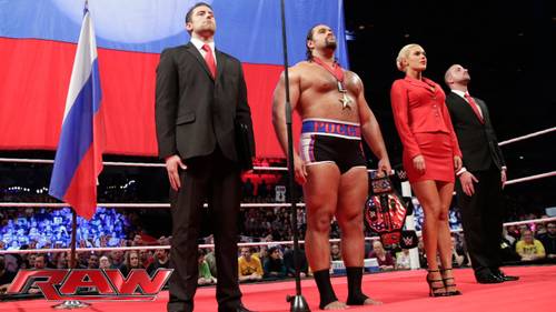 Recordemos que en esos momentos Rusev era presentado como ruso, es más, en la celebración le dedicó su victoria a Vladimir Putín.