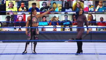 Previo a la lucha, Belair y Banks se miraron fijamente y ambas rompieron en llanto por la sensación del momento y por luchar luego de un año con la presencia de fans en la arena