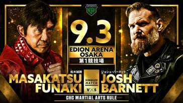 Será el 3 de septiembre cuando Josh Barnett y Masakatsu Funaki se enfrenten en el EDION Arena de Osaka en un combate bajo reglas especiales de Artes Marciales GHC.