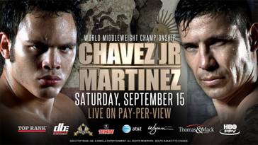Combate a 12 rounds de unificación por el cinturón mundial medio Top Rank®, Zanfer Promotions and DiBella Entertainment, in association with Wynn Las Vegas, AT&T and Tecate, presentan Chávez Jr. vs. Martinez Middleweight Championship – 15 septiembre 2012 desde el Thomas & Mack Center, University of Nevada, Las Vegas. ANTECEDENTES Chávez Jr. se ve cara