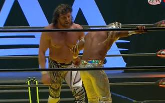 El enmascarado se enfocó en atacar la rodilla izquerda, la cual castigó con un vuelo y liego una cruceta, pero Kenny Omega siguió resistiendo el ataque de su rival.