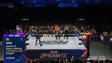 El duelo comenzó parejo, aunque Swerve tomó ventaja tras una distracción de Prince Nana. Sin embargo, Omega reaccionó rápidamente, llevando la acción a ringside donde castigó a su rival contra la barricada y las escaleras metálicas.