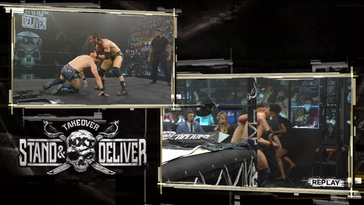 Cuando Kyle aplicó una variante de triangulo, Adam Cole tomó una herramienta de hierro para golpearlo y romper el castigo. Después ambos quedaron sentados en un par de sillas donde siguieron repartiendo golpes.