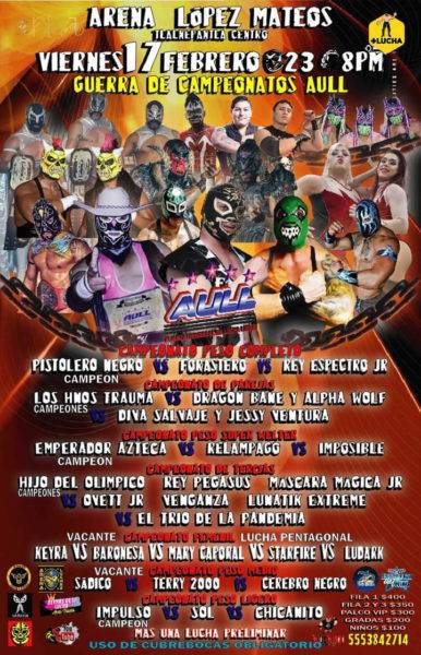 La Arena López Mateos de Tlalnepantla, celebrará un evento especial, el cual se denomina «Guerra de Campeonatos»; donde los títulos de la empresa AULL estarán en juego.