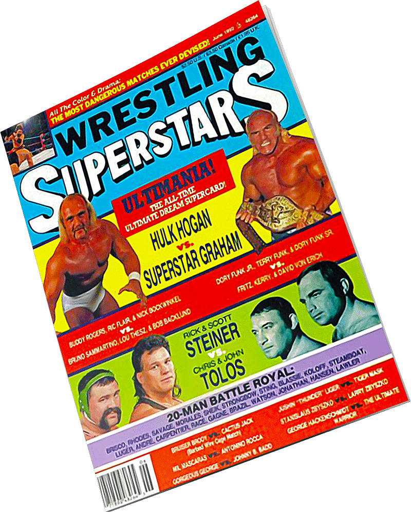 La respuesta está en la edición de enero de 1993 de la revista Wrestling Superstars (que salió a la venta en noviembre de 1992). Esa revista, de la familia de Pro Wrestling Illustrated, una de las llamadas Apter Mags —debido a que el editor era Bill Apter—tenía una interesante sección sobre dream matches, en la cual narraba encuentros ficticios entre las principales figuras de la lucha que por una u otra razón no podían enfrentarse de verdad. Así, publicaron encuentros como el de Hulk Hogan y Brutus Beefcake vs. Sting y Davey Boy Smith, Bret Hart vs. Ron Simmons, Curt Hennig vs. Rick Rude o Elizabeth vs. Sensational Sherri.