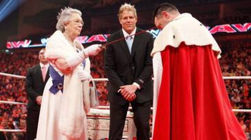 Fue así que una mujer muy parecida físicamente con la reina Elizabeth II apareció en el ring, ante la mirada atónita de los fans, quien nombró al comentarista como «Sir Michael Cole», quien en la ceremonia estuvo acompañado de Jack Swagger.