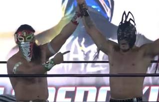 Mientras que en el duelo por el Campeonato de Parejas NWA, Bestia 666 y Mecha Wolf retuvieron ante Aero Star y Drago.