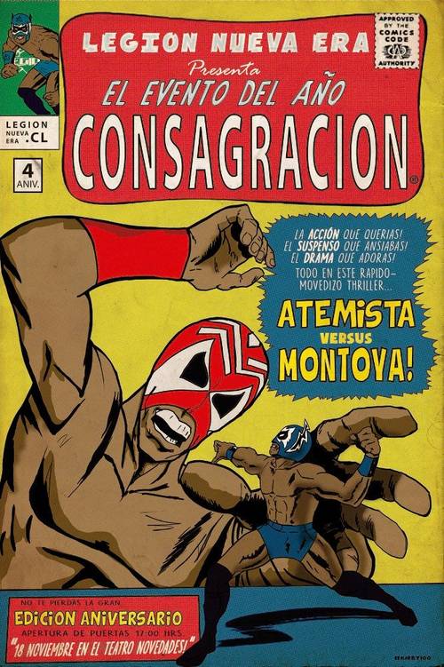 Mas el destino ha querido reunirlos nuevamente, en un encuentro que no ha cesado de generar expectativas en los fanáticos de la Lucha Libre. El próximo sábado 18 de noviembre, Atemista y Montoya volverán a enfrentarse sobre un ring, luego de cinco años del cisma inicial. El encuentro no se llevará a cabo en una arena cualquiera: se trata nada menos que del retorno de la Lucha Libre al Teatro Novedades, lugar que fue testigo del renacer de este deporte en la primera década de este siglo. El evento es Consagración, el show aniversario que cada año LEGIÓN celebra en su encordado, y que nunca ha fallado en encantar a los fanáticos. Será un evento histórico que promete marcar un nuevo hito en la Lucha Libre nacional».