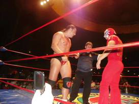 - La primera caída fue para los rudos cuando en una escaramuza plancharon al Latin Lover y después siguieron con La Máscara.