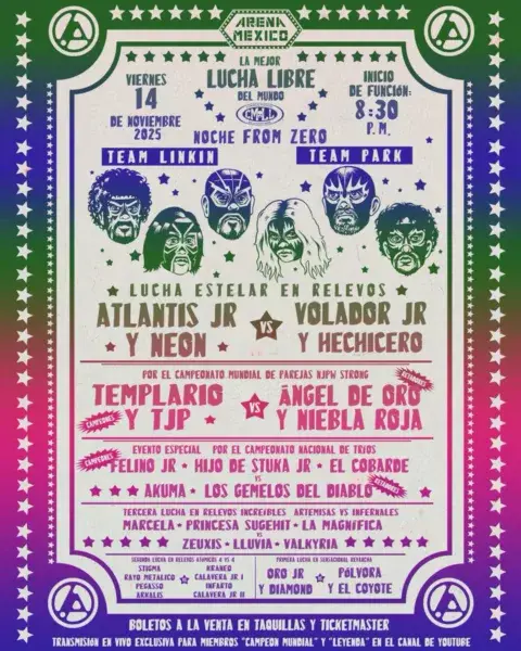 “Noche From Zero” rendirá homenaje al álbum From Zero de la banda, ahora liderada por la carismática vocalista Emily Armstrong, y contará con combates temáticos inspirados en los grandes éxitos del grupo, con máscaras, vuelos y dramatismo a flor de piel.