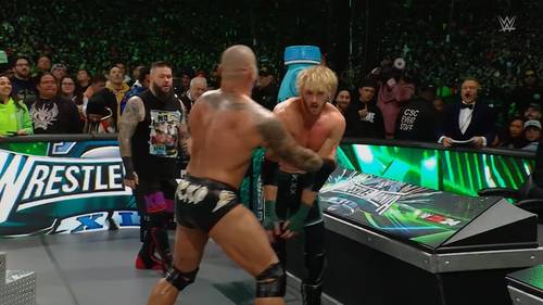 Orton fue a la esquina y se preparó para una Punt Kick, pero la persona en el disfraz de Prime Energy sacó a Paul del ring. Se reveló que era Ishowspeed, el reconocido YouTuber. Ishowspeed empujó a Orton, así que Orton lo derribó furiosamente. Orton limpió la mesa de comentarios y le quitó el disfraz de Prime Energy. Lo puso en la mesa de comentarios. Orton lo miró y le conectó un RKO en la mesa a Speed!