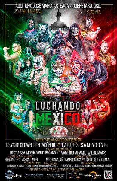 Lucha Libre AAA comienza sus actividades de 2023 este 21 de enero en el Auditorio José María Arteaga en Querétaro, con su gira Luchando por México y ya conocemos el cartel.