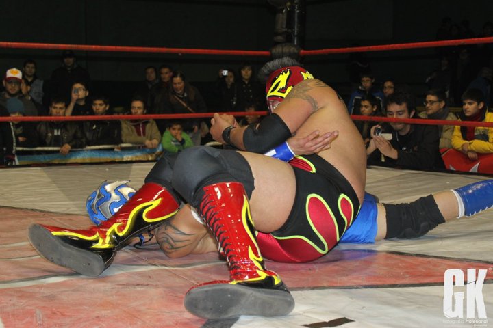 - Los 3 chilenos se unen para eliminar de contención al Chingón, pero sería solo por unos momentos, ya que se pudo recuperar y tuvo unos excelentes intercambios de movimientos con Montoya, ambos demostrando su carisma, técnica y atleticismo. Luego la cosa empieza a salir del ring ya que Montoya voló hacia el ringside y luego el peso pesado Mákina fue quien hizo lo mismo para provocar una gran reacción del público.