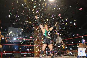 - Muy buena lucha para continuar, tal vez técnicamente no fue tan buena, pero desde el punto de vista de la historia que debían contar en el ring fue excelente. Como era de esperar Kristy dominó gran parte del combate, con algunas arremetidas de Riadi Kim y grandes movidas por parte de Tiffany, incluso volando desde lo alto de una esquina hacia el ringside. Ya bien avanzada la lucha el árbitro es golpeado, lo que aprovecha Kristy para quitarle la correa de los pantalones al anunciador y castigar a sus 2 oponentes sin piedad, pero en esos momentos aparece una luchadora desconocida, con un atuendo de «Cowgirl» y le aplica un tremendo DDT a la campeona!!!!. Luego del castigo la vaquera toma una soga y amarra a Kristy a las cuerdas del ring y se retira. Riadi Kim aprovecha estos momentos de distracción e intenta llevarse la victoria, pero Tifanny contraataca y le aplica su movimiento final para lograr la cuenta de 3 y así acabar con el reinado de casi 2 años de Kristy.Anuncio