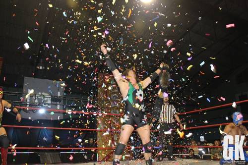 - Ya concluido el combate Engranaje Jack celebra su triunfo con una lluvia de papeles y visiblemente emocionado. Luego de unos momentos el Último Chingón toma el micrófono y agradece a todos el apoyo que le dieron, además aprovecha de retar al nuevo campeón a una lucha limpia, uno contra uno. Engranaje hace caso omiso al reto y manda al Chingón de vuelta a su país. Para finalizar el show Montoya agradece al público por su asistencia y varios de los luchadores que participaron en el show salieron a sacarse fotografías con los fanáticos.