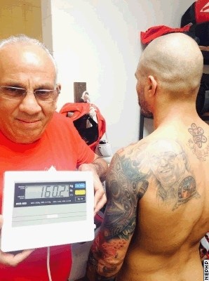 De acuerdo con las reglas de boxeo, donde se estipula que los contendientes deben dar cierto peso (que no exceda el 10% del peso total de la categoría en que pelearán. Dicho pre pesaje se realizan un mes y una semana antes de la pelea.
