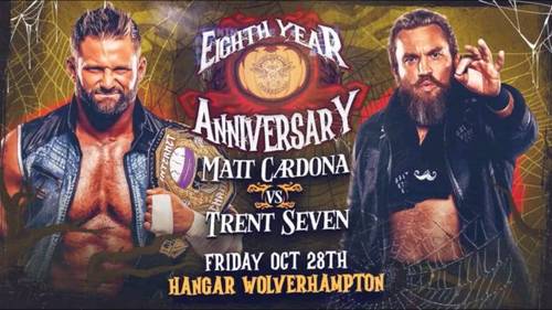 Hoy, dentro de la primera función, desde The Hangar de Wolverhampton (Inglaterra), Cardona tiene combate contra otro ex-WWE, Trent Seven, de vuelta a los rings tras salir de McMahonlandia por el cierre de NXT UK.