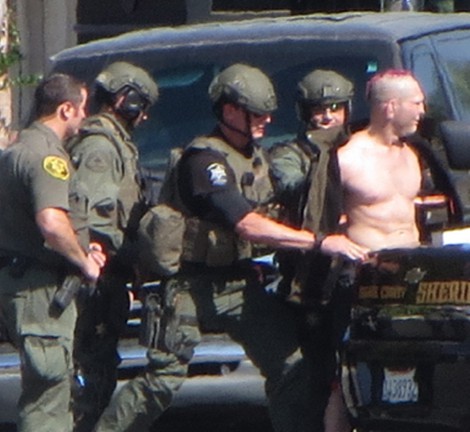 Miller se resitió al arrestó, agredió a los oficiales y les escupió. Finalmente se necesitaron 4 elementos de la policía para someterlo y meterlo en la patrulla. Las cosas se pusieron densas dentro de la unidad, porque «Mayhem» pateó las ventanillas y escupió a los policías.