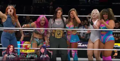 El caos escaló cuando Julia Hart, Skye Blue y Thekla aparecieron junto a sus aliadas de Triangle of Madness. Jamie Hayter, Harley Cameron y Willow Nightingale corrieron al ring para equilibrar la situación, mientras Mercedes Moné dudaba en intervenir, siendo atacada por Kris Statlander en la rampa.