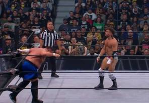 MJF respondió de forma impresionante y aplicó una desnucadora, para al fin conseguir un poco de tiempo. Samoa aplicó un Coquina Clutch, pero el campeón le conectó un faul, pero justo cuando iba a golepar con el anillo, el réferi se dio cuenta.