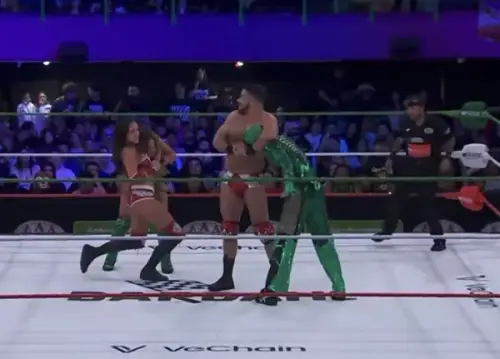 El momento decisivo llegó cuando un mal cálculo provocó que los retadores golpearan accidentalmente al réferi. En medio del desorden, Chelsea Green logró hacerse de un palo de kendo mientras Ethan Page empujaba a Lola Vice, dejando la escena lista para un ataque ilegal que quedó sin supervisión arbitral.