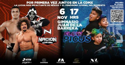 Nación Lucha Libre llegará el próximo 6 de noviembre al Gimnasio Juan de la Barrera, en un evento que compartirá con los Flow Picus como invitados especiales.